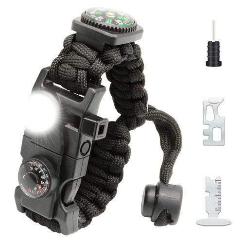 Outdoor camping multi-purpose adjustable tactical lifebuoy bracelet with thermometer